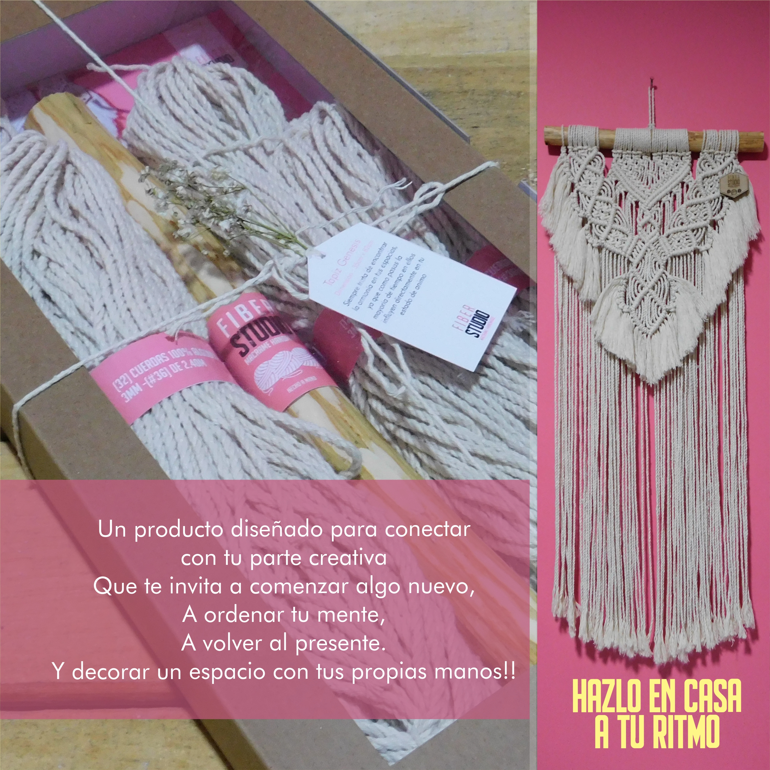 En Fiber Studio, ofrecemos una variedad de productos y cursos diseñados para inspirar tu creatividad y empoderarte en el arte del macramé.