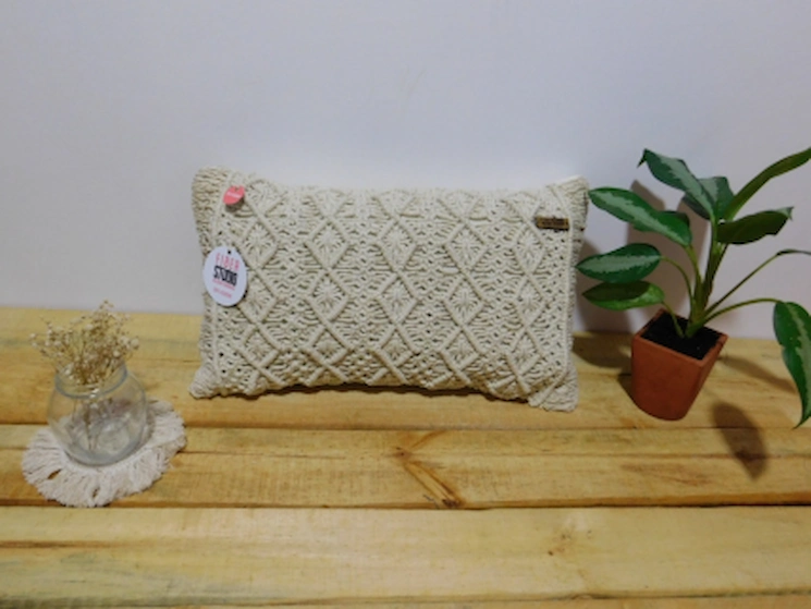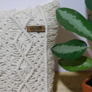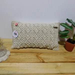 Cojín básico Relleno 100% Siliconado, antialérgico y anti ácaros con funda de tejido en macramé Laia Gold. (Incluye cojín de relleno)