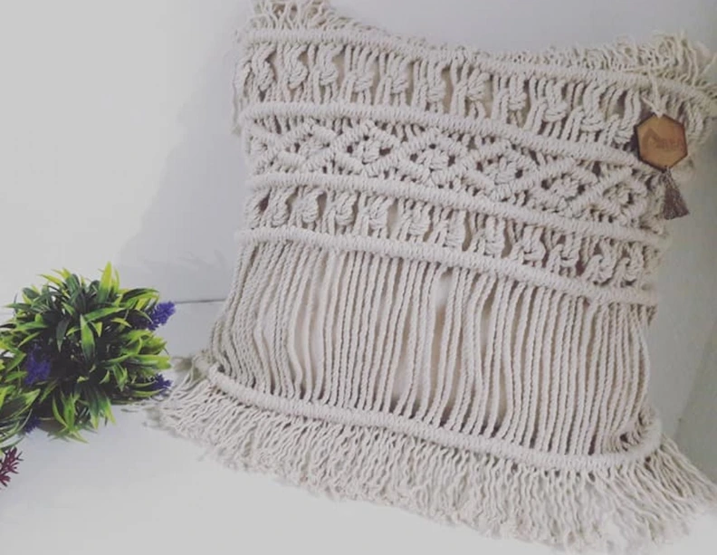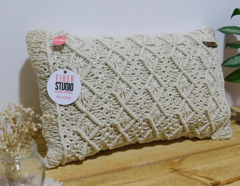 Cojín básico Relleno 100% Siliconado, antialérgico y anti ácaros con funda de tejido en macramé Aroa Opp. (Incluye cojín de relleno)